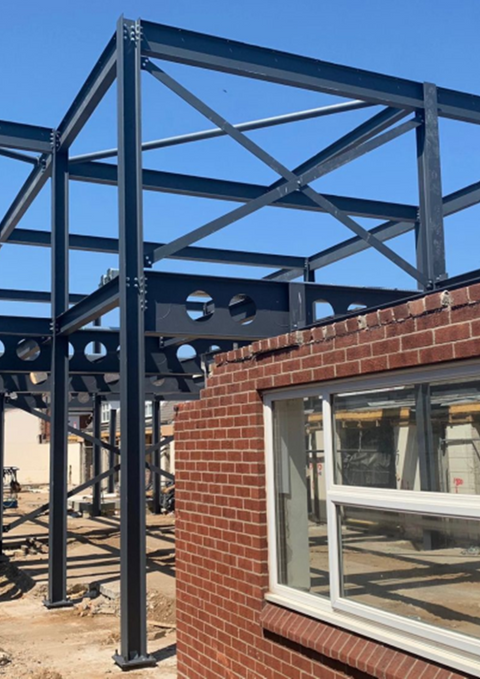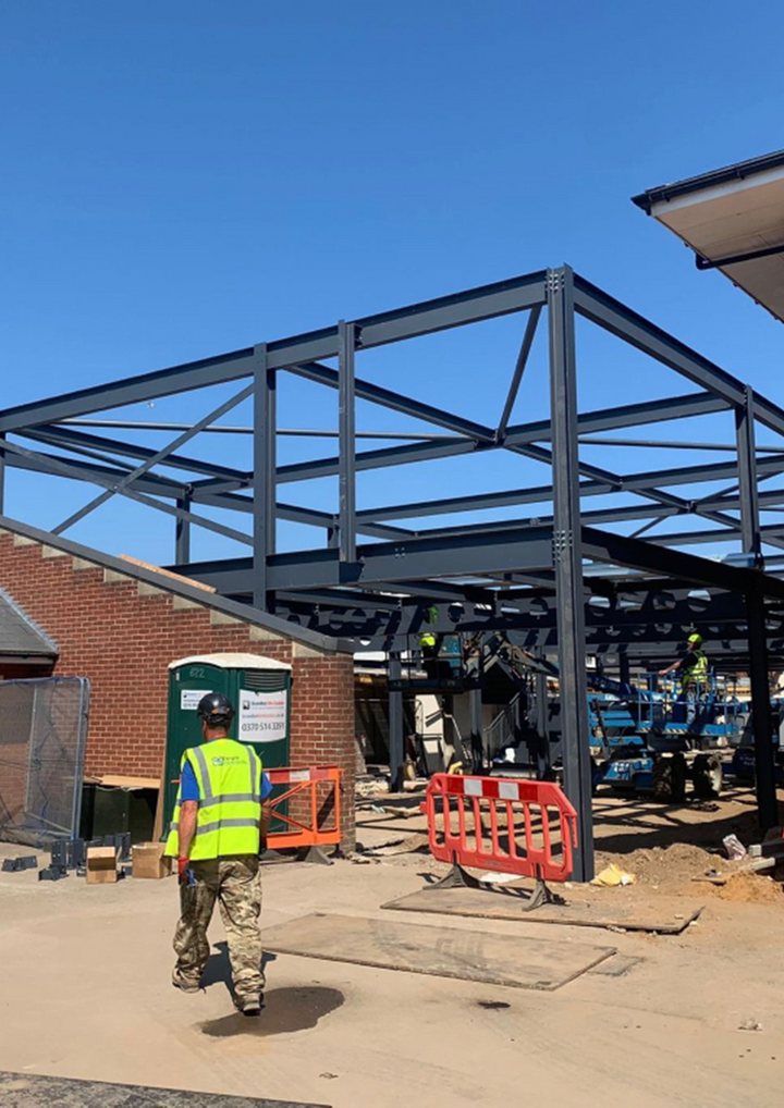 The project involved partial demolition of an existing building and construction of a new two storey steel frame extension for classrooms and support facilities.